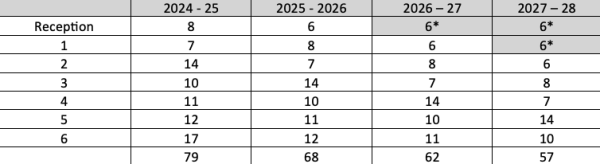- If our Reception intake remains the same, by September 2027 there will be 57 children at the school. This means the school would be operating at 27% capacity.